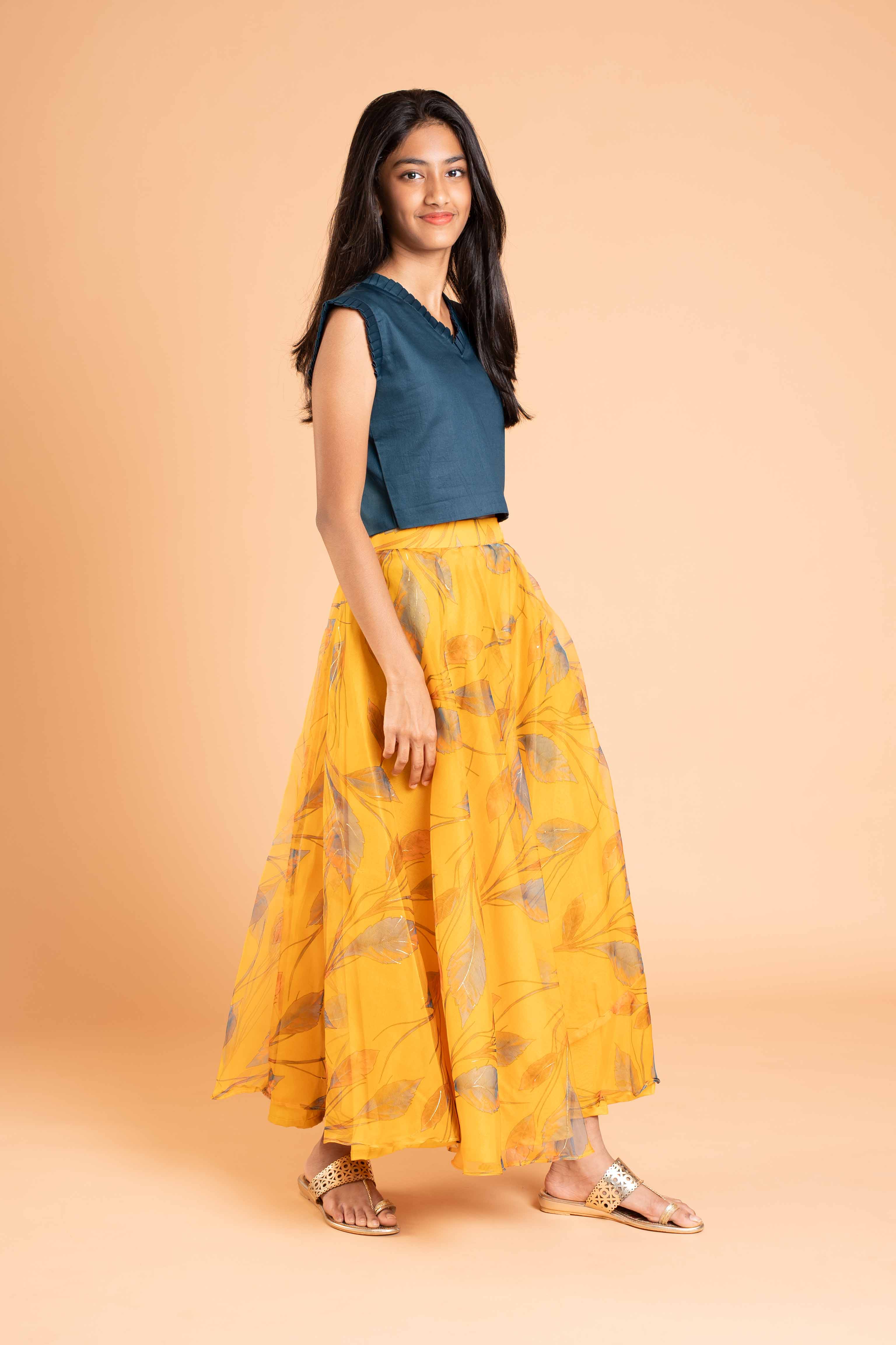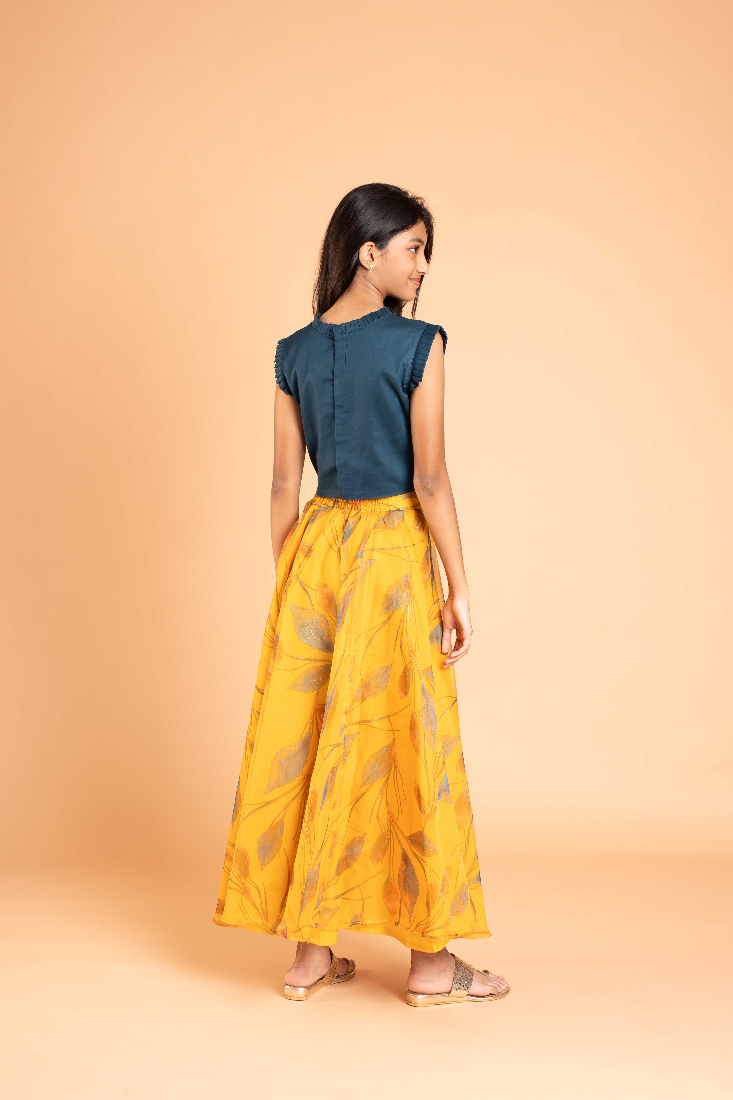This is a two piece set with Umbrella cut flared lehenga with fusion style crop top