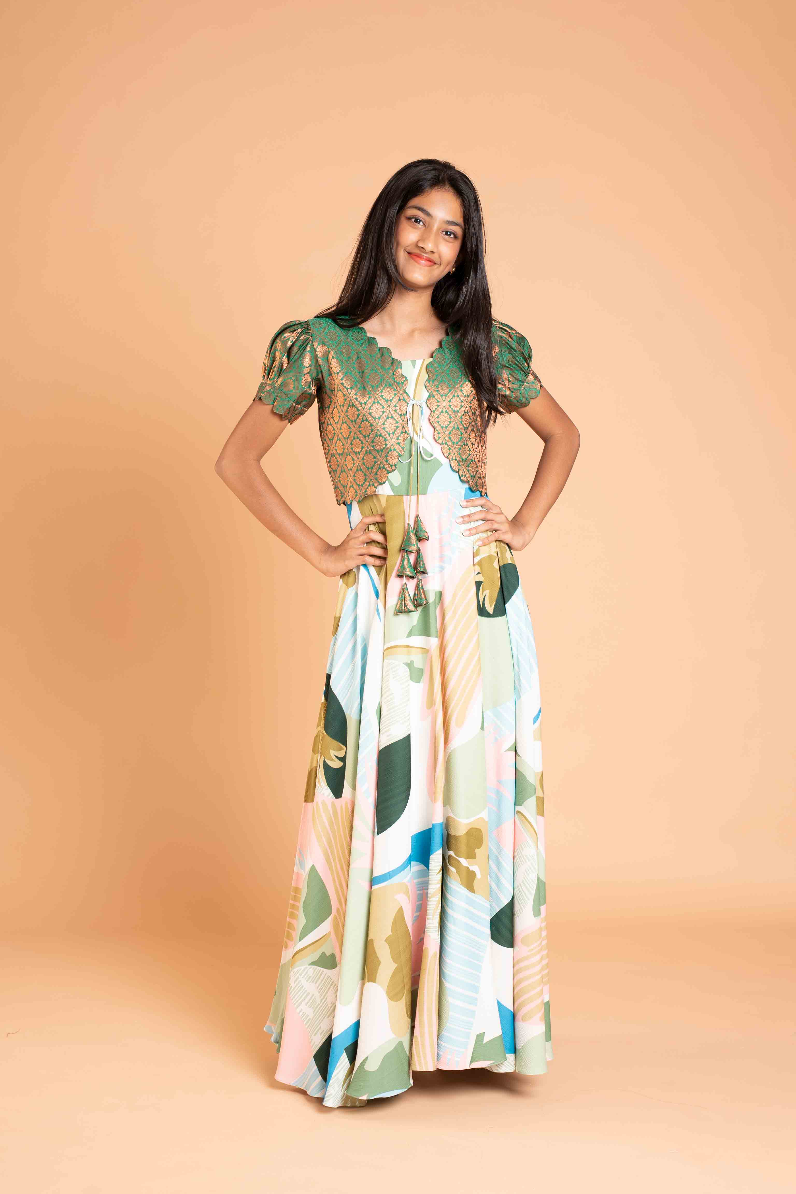 Long frock and Banaras over coat