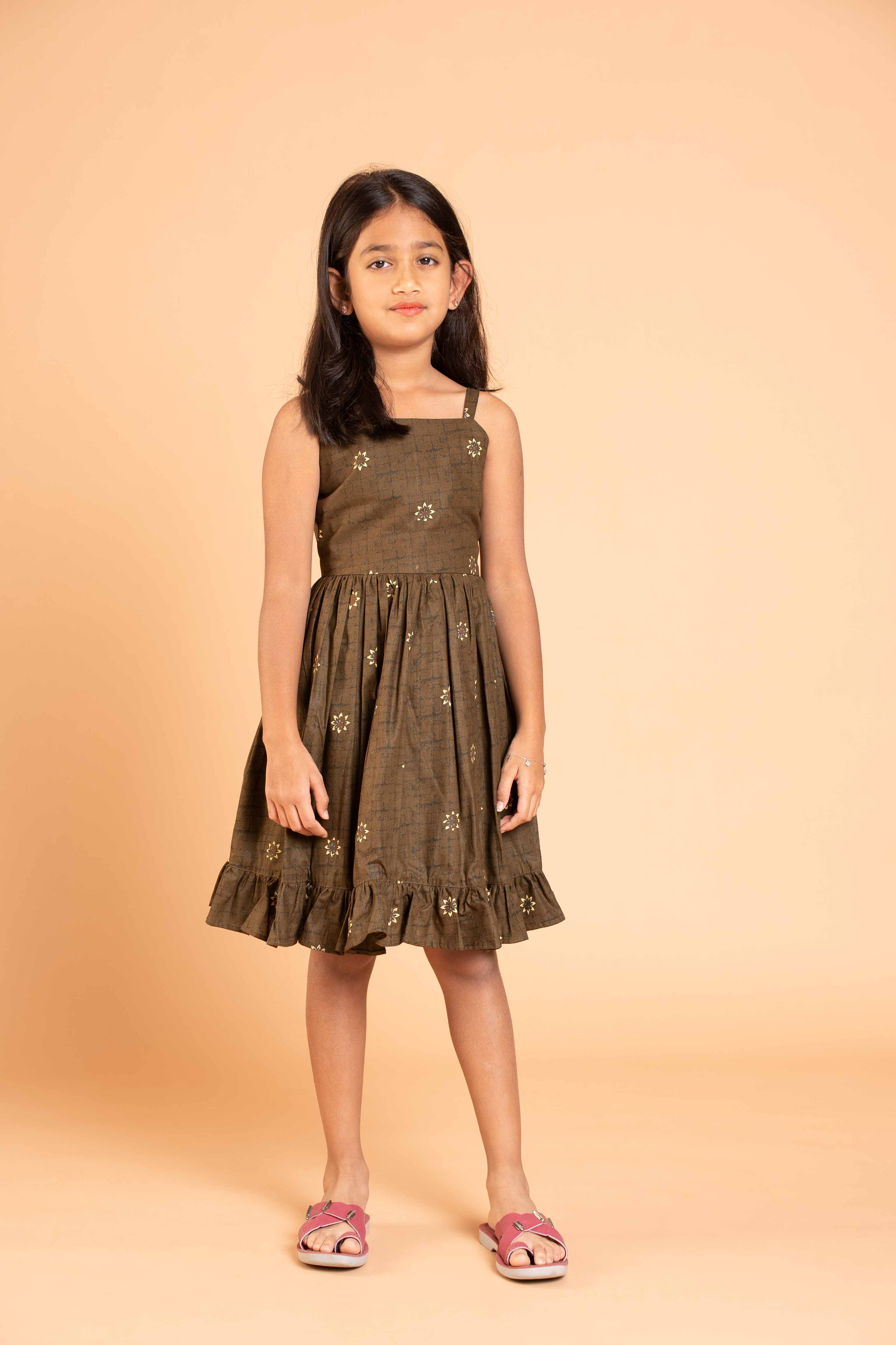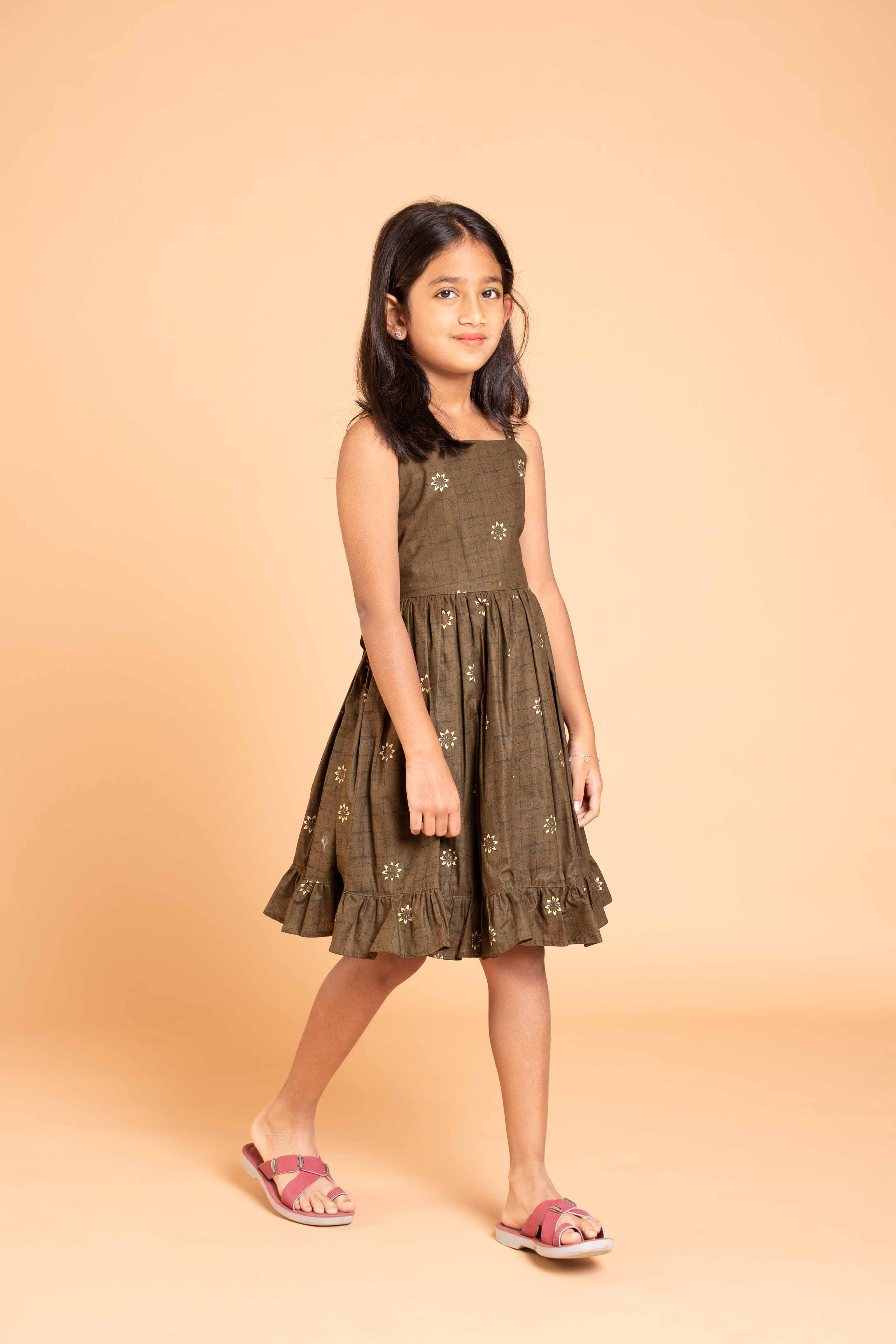 This is a one piece Knee length dress with frills at the bottom.