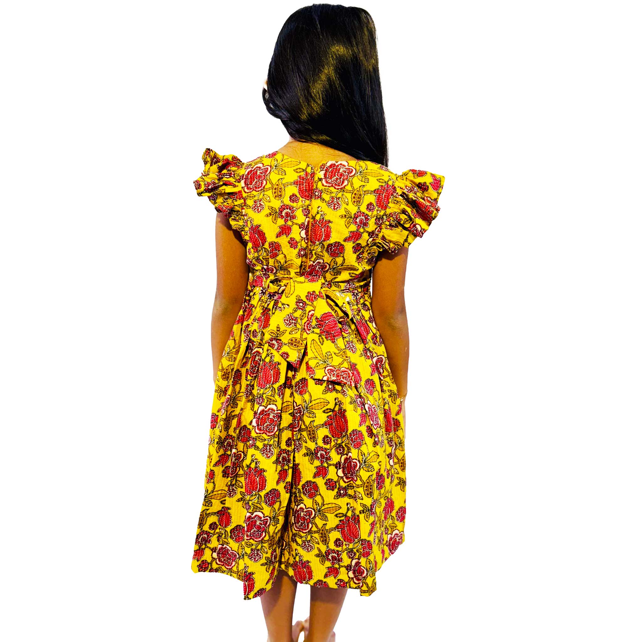 This is a single piece frock with frills on the sleeves and lace detailing on the waist.